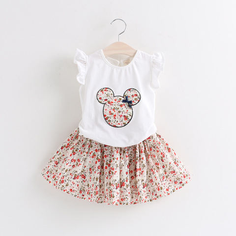 Desenhos animados 2 peças conjunto saia 3-5 ano de idade as crianças roupas vestidos da menina do bebê set para atacado