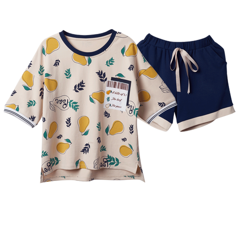 Feminino verão Mais Recente Projeto Atacado Bonito Mulheres Pijamas De Algodão Curto Set